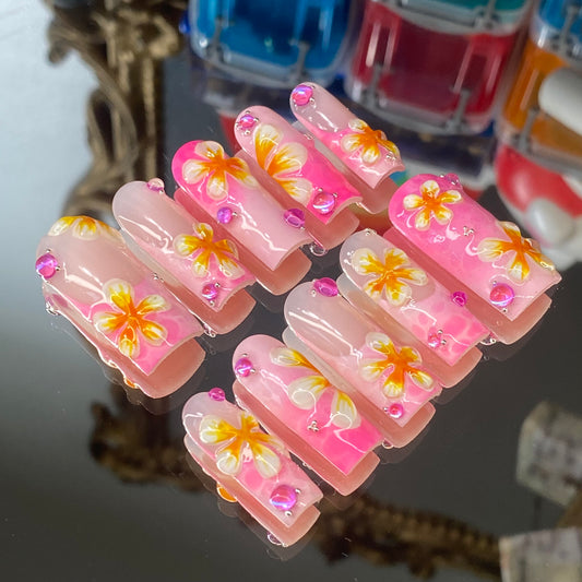 Tropical💕💛🧡 – Luxury Handmade Press-On Nails