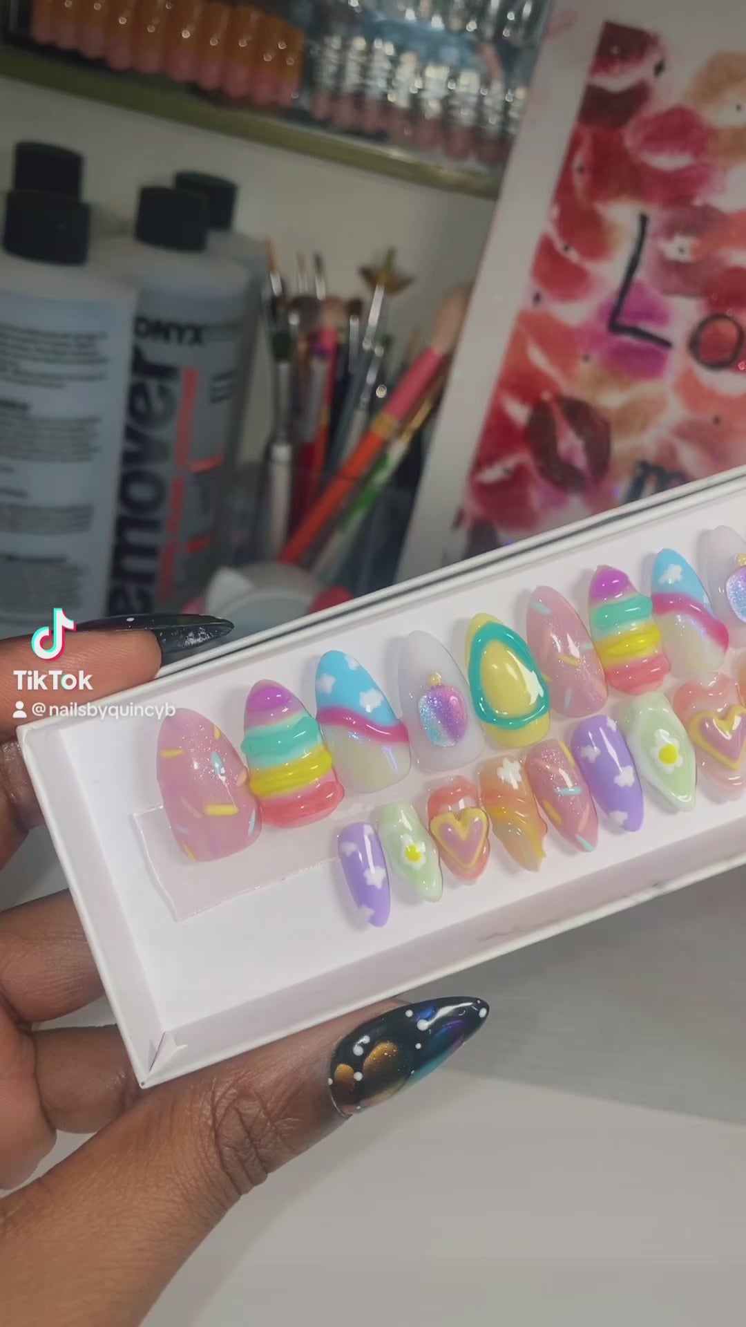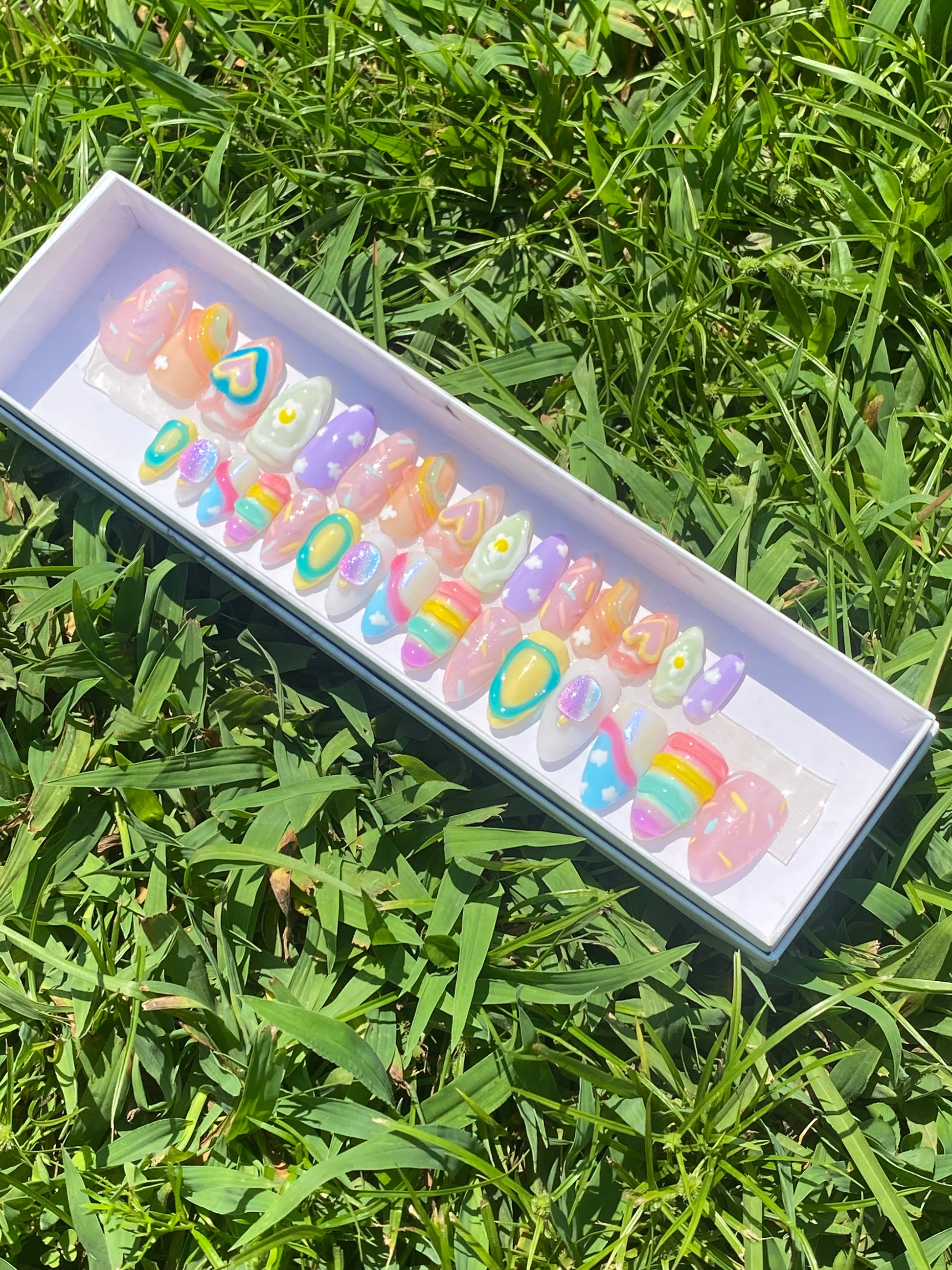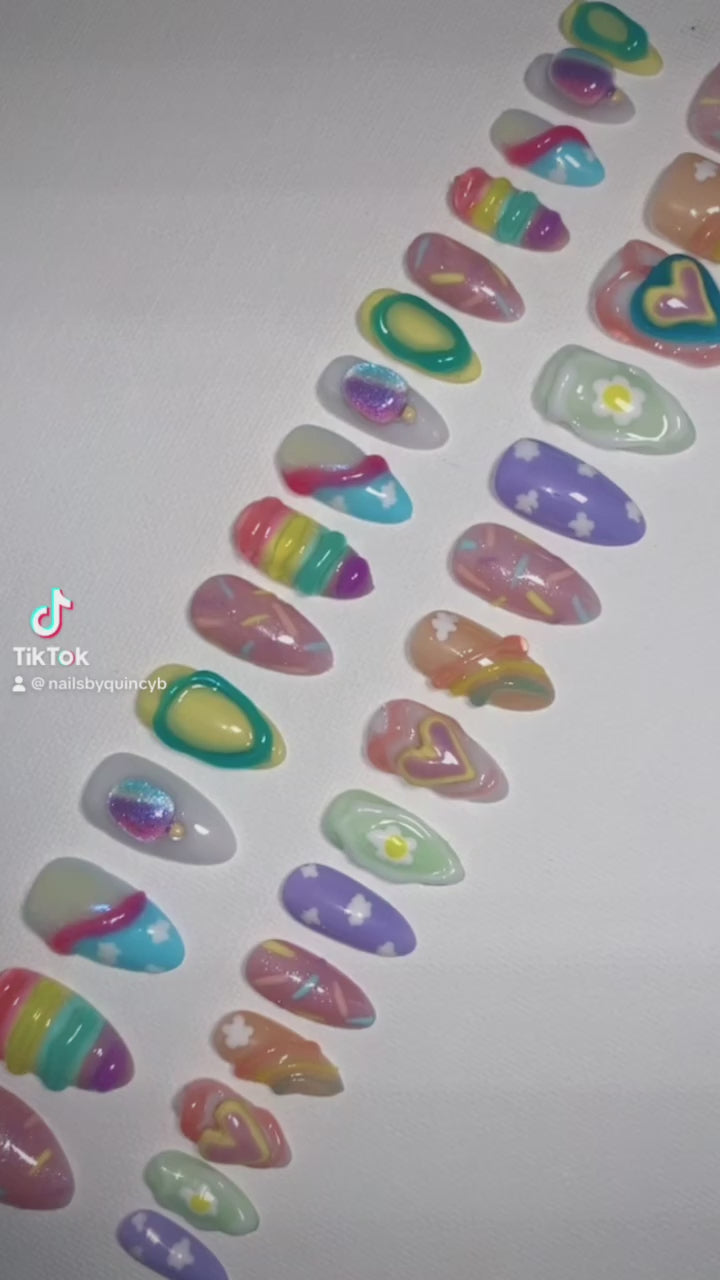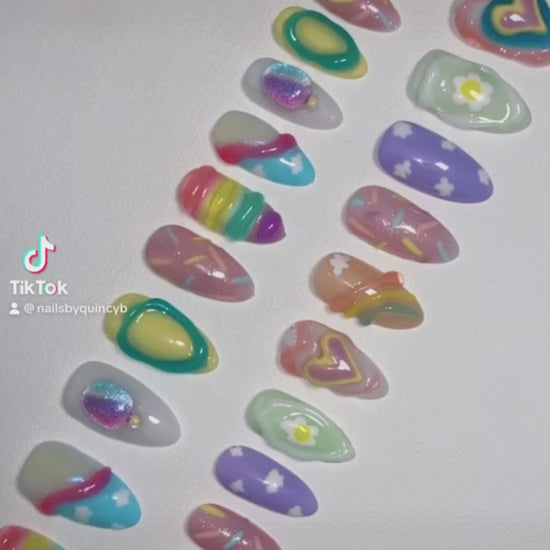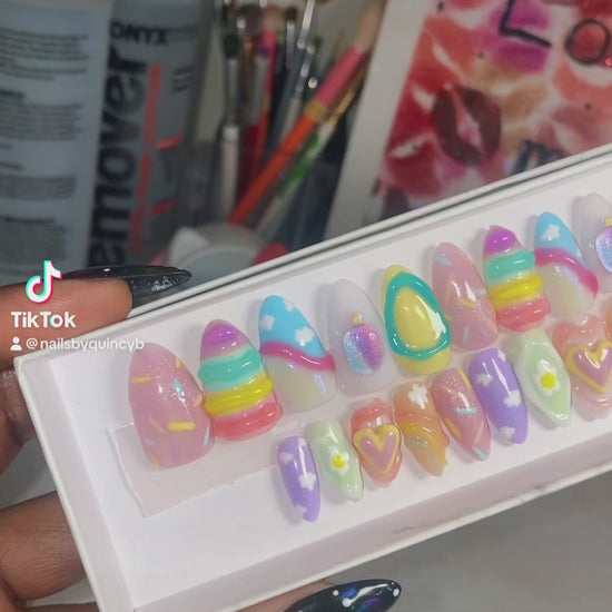Please understand these sets take 3-6 hours to complete. Pricing is based off of the number of nails, the time and precision it took to customize and hand paint each nail, as well as the products and charms used to create such artwork.