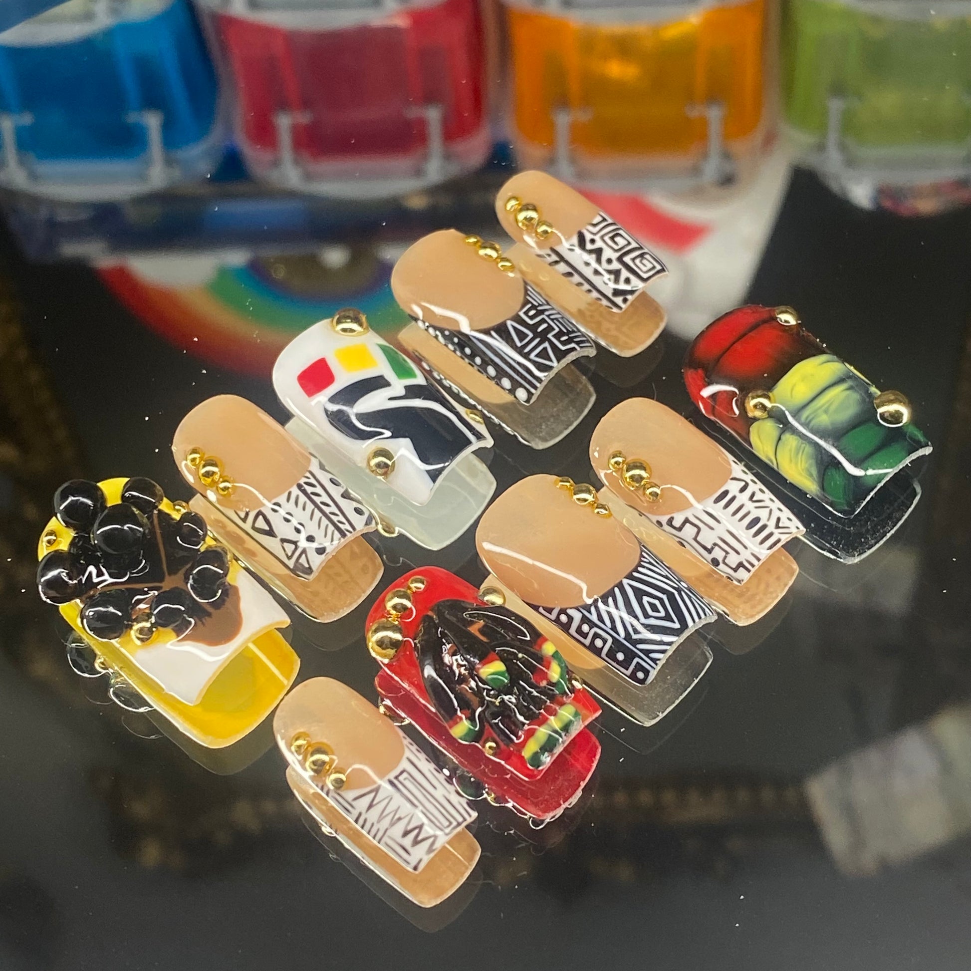 We offer a variety of shapes (like Coffin, Almond, Stiletto, and Square) and lengths (Short, Medium, Long, XL) to match your vibe.