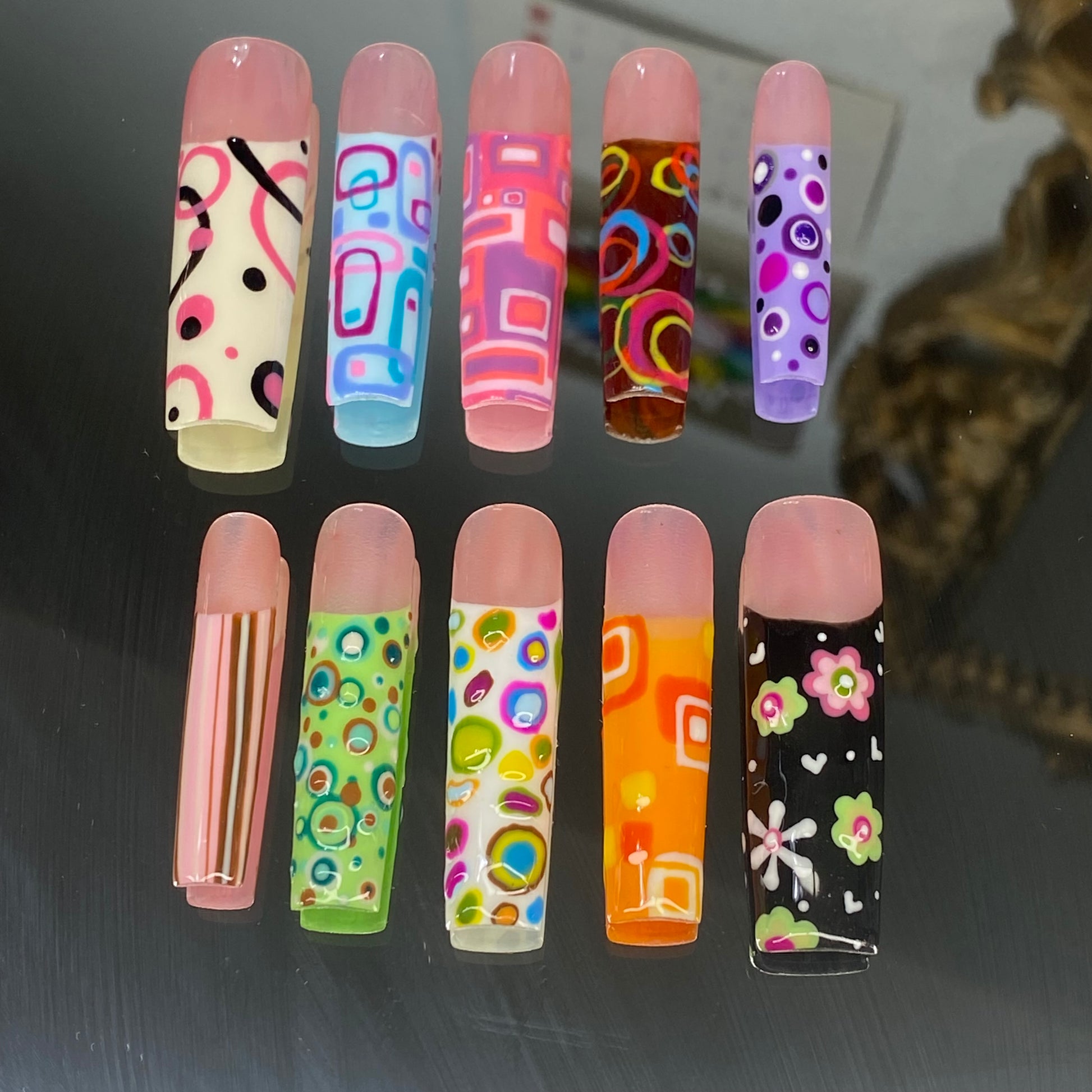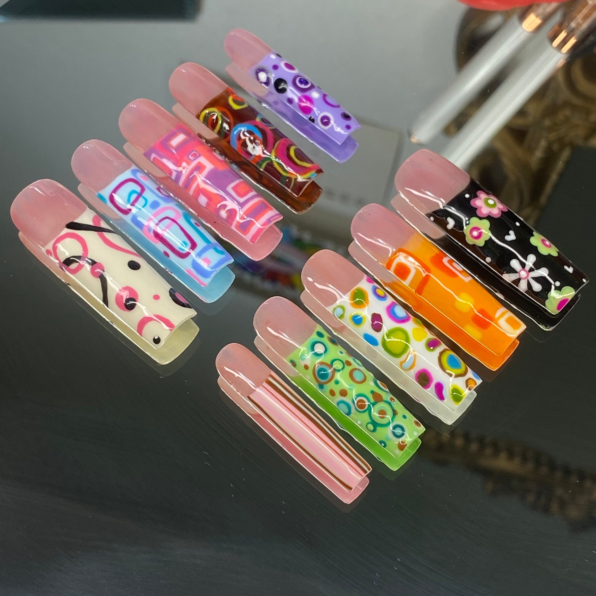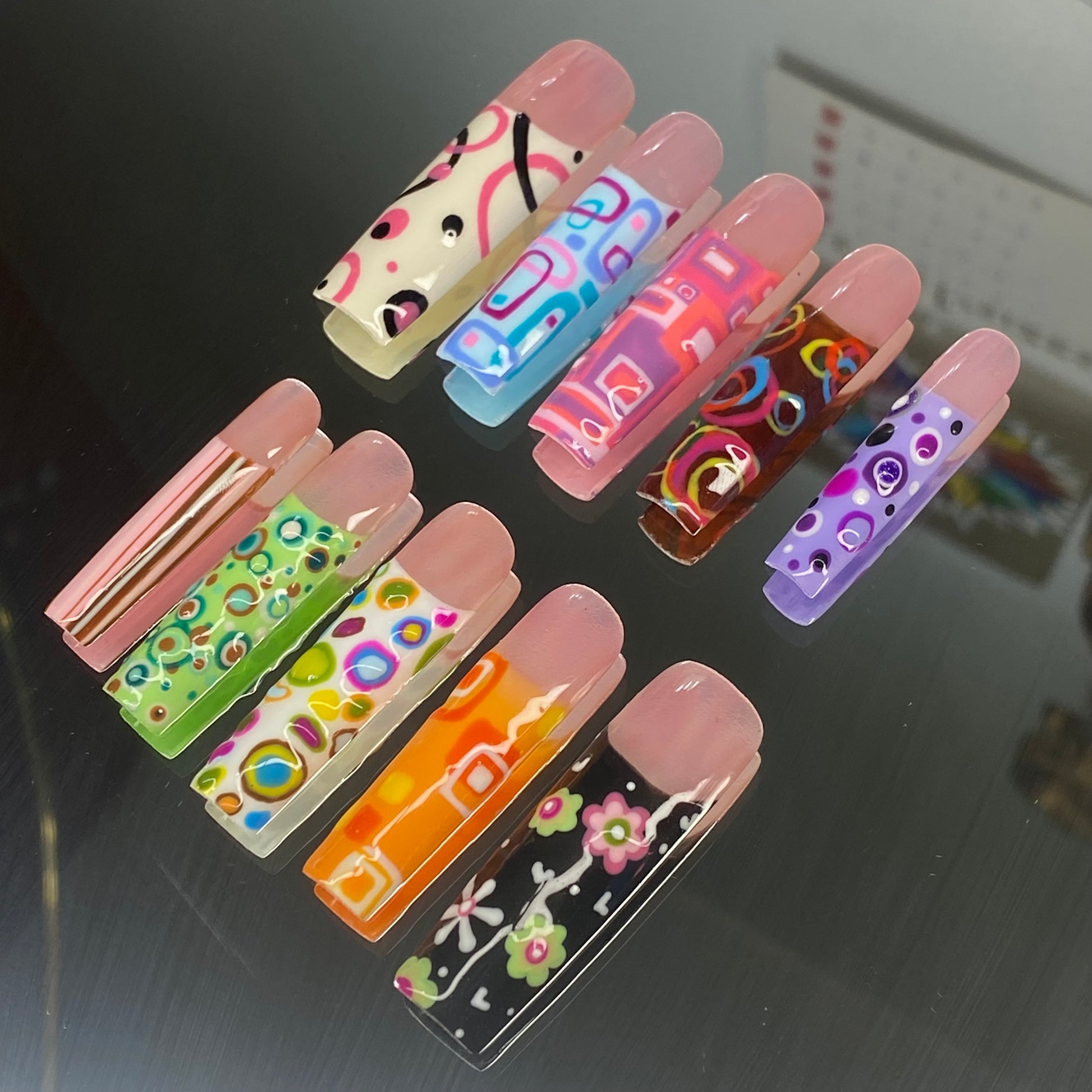 We offer a variety of shapes (like Coffin, Almond, Stiletto, and Square) and lengths (Short, Medium, Long, XL) to match your vibe.